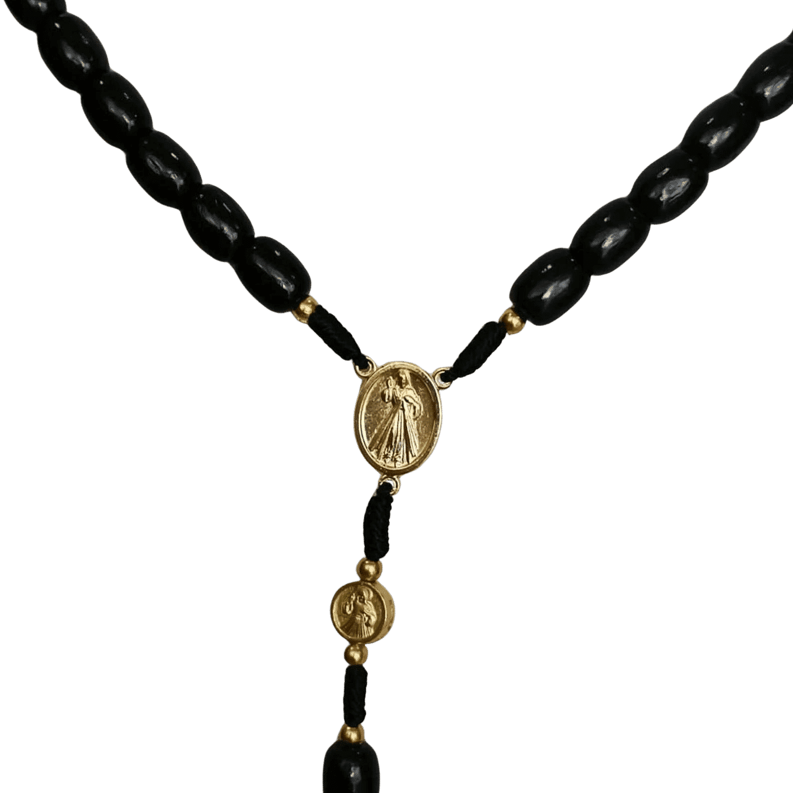 • Medaglia centrale e medaglie della Madonna Misericordiosa in tonalità oro, con croce in tonalità oro, prodotto in Italia.